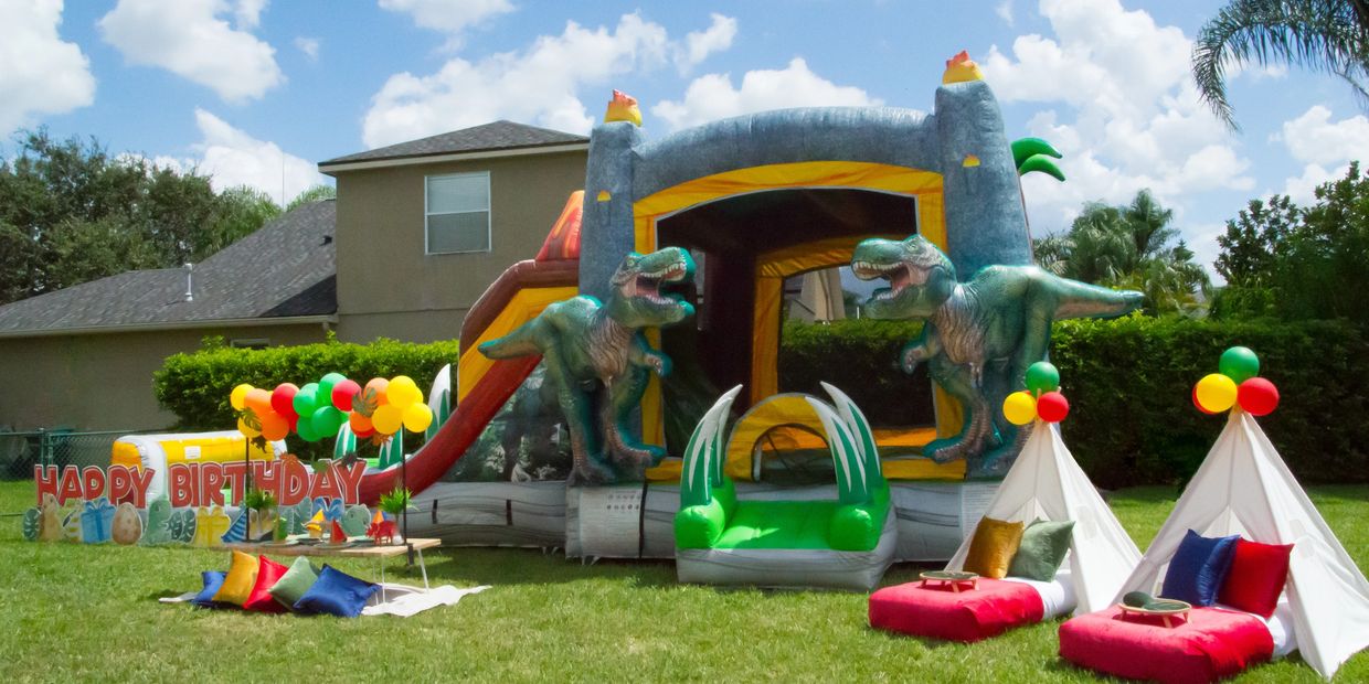 Why settle for ordinary when you can go full Jurassic? Our all-in-one packages have everything from a themed party setup for dino-sized snacking, a bounce house for endless stomping fun, eye-catching yard displays that set the scene, and cozy teepees for guests who are staying overnight. It’s everything you need to turn your backyard into a prehistoric playground - fun, memorable, and totally stress-free.